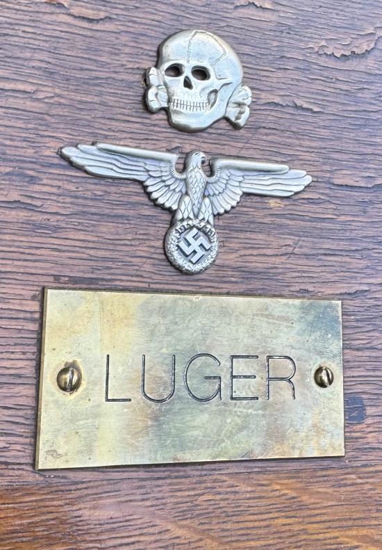 Wooden pistol case with German SS insignia to the lid. Very very made box specifically for a Luger.