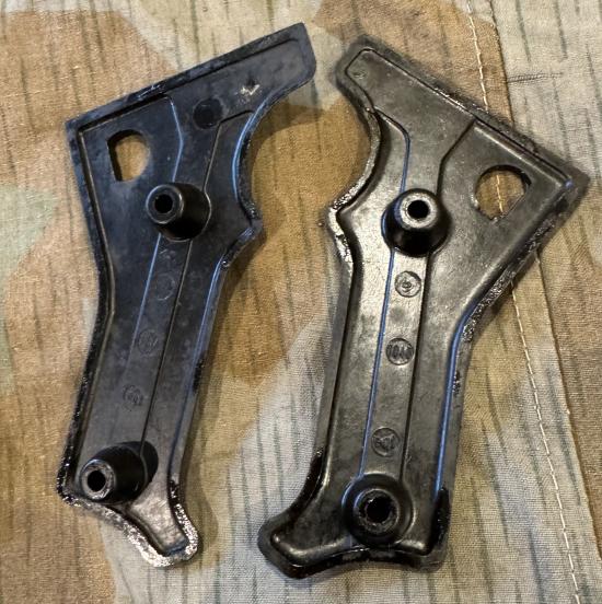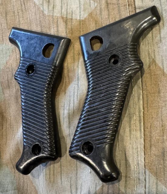 Excellent original condition black Bakelite grip set for the MG42. Maker coded ‘eqt’