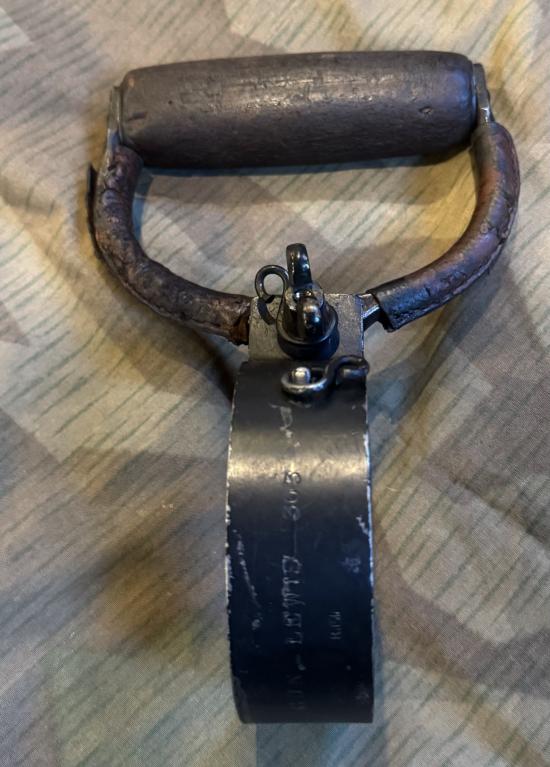 Rae to find original WW1 Lewis Gun carry handle with leather padding still in place. Good used condition. Marked Gun Lewis .303