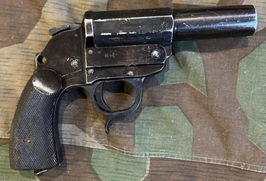 Excellent used condition 1940 dated ‘ac’ maker coded for Walter manufacture LP34 signalling pistol. Waffenampt stamped, complete with certificate.