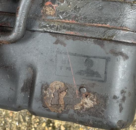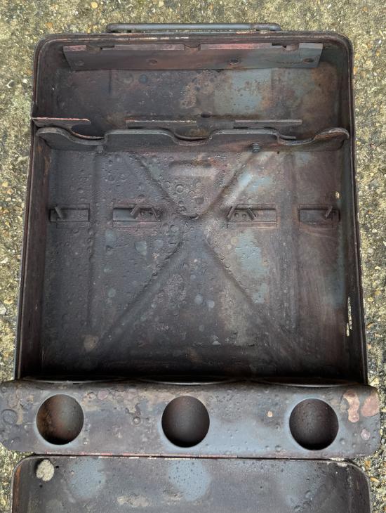 WW2 German 8cm Mortar Round Box In grey. Good used condition, some holes. Nice markings and stamp