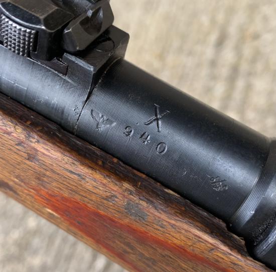 Good used condition deactivated SS contact bnz ‘44 marked K98 rifle. These SS contract rilfes had minimal WaA acceptance proofs as they were not procured through the Army ordnance office. The bnz markings are also slightly different and the full date of ‘44 instead of a single 4 which would be seen on a standard Wehrmacht k98. Laminate buttstock, cupped buttplate and stamped front band. Complete with certificate.