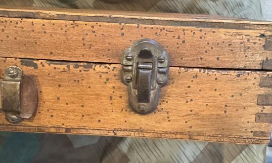Large boxed KM large gun calculator instrument. kM eagle marked on the box and instrument. Good used condition.