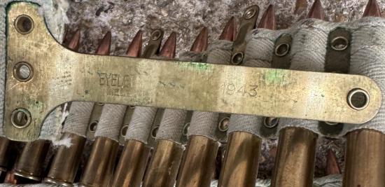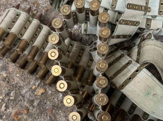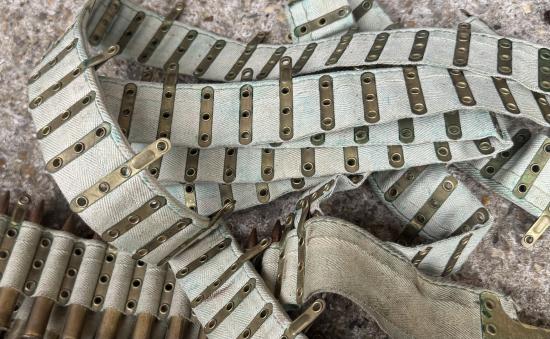 Good condition original Vickers MG cloth belt dated 1942 with 100 rounds of inert .303 ammunition