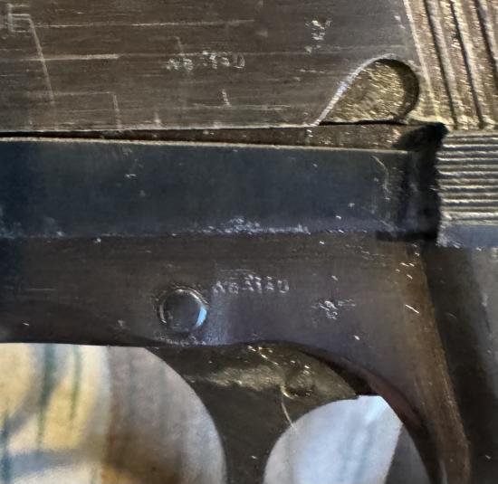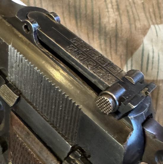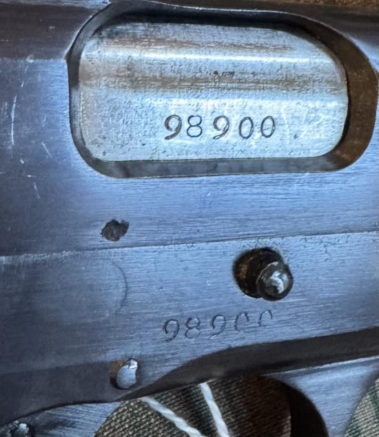 Good used condition early Browning Hi Power 9mm pistol with tangent sights. Matching serial numbers and WaA eagle proofs. Complete with certificate