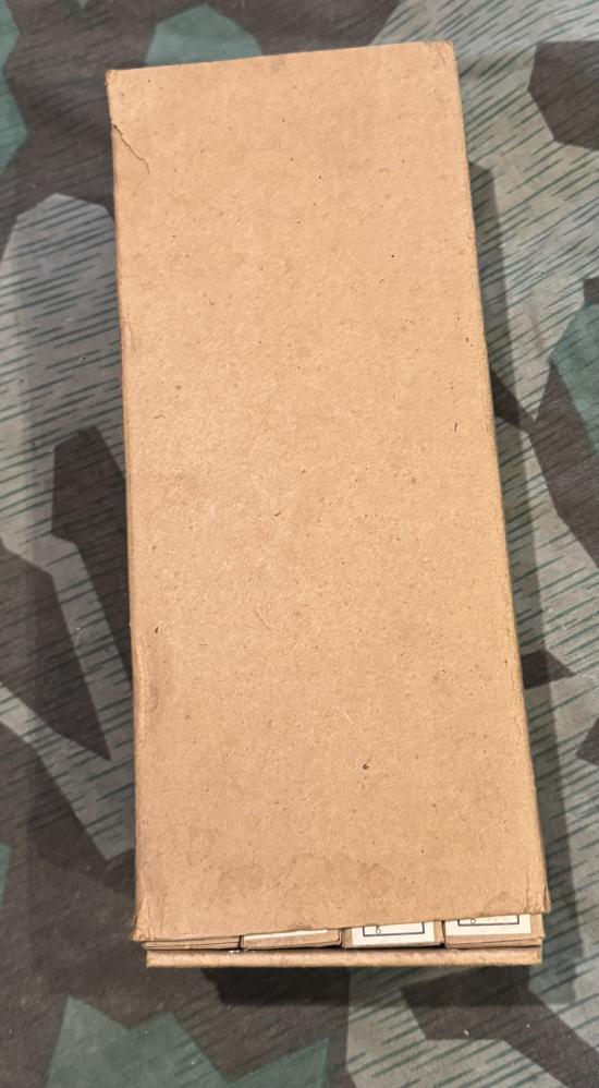Complete cardboard ammunition carton filled with inert rounds contained within the original cardboard carton in excellent original condition. All inert rounds contained within are original German wartime 7.92mm