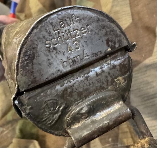 Original condition ’Laufschutzer 43’ barrel case for the MG34 & MG42 maker coded ‘bhm 4’ for 1944 manufacture. Original tan paint on the inside and some remaining externally.