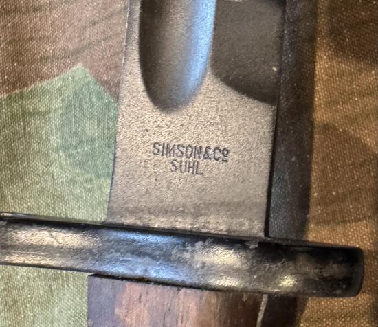 Excellent condition original bayonet for the German Steyr Solothurn Mp34. Maker marked